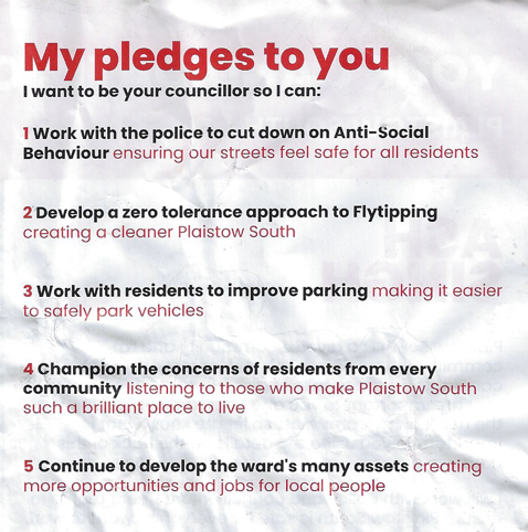 It may be Corbyn’s influence or simply an expression of utopian politics, but Mr Islam promised the following in his election leaflets.