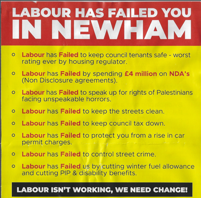 Labour’s sudden attachment to the national flag was unlikely to convince Reform or Tory voters that Labour shared their interests, in addition it may have alienated the voters that Newham Independents are seeking to cultivate.