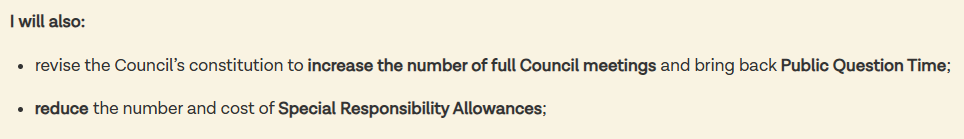 This is done under the auspices of the mayor who promised to cut spending on councillors and special responsibility allowances.