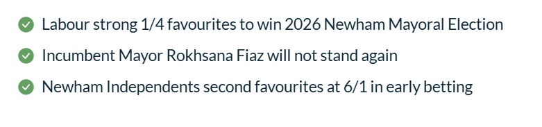 It seems that bookmakers have taken an interest in the Newham Mayoral Race.